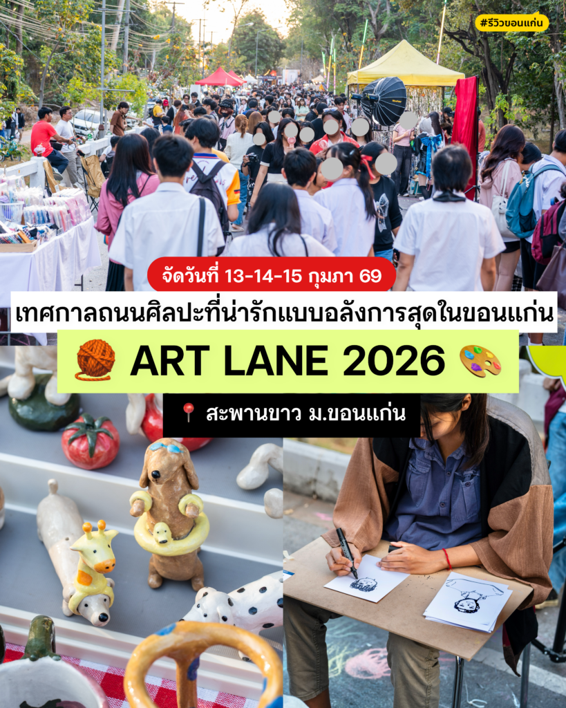 สอบถามข้อมูลเพิ่มเติมได้ที่เพจงาน >> https://www.facebook.com/artlaneKKU